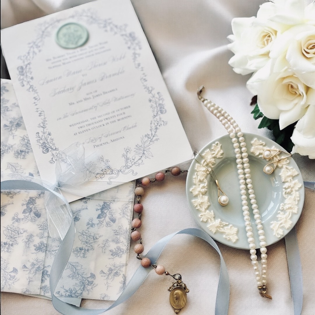Stella Maris Designs was started through a great love of Our Lady and a desire to see her more greatly honored. I wanted to build a brand that sourced beautiful and quality materials and combined them with timeless designs to elevate and inspire souls in their journey to Heaven. Recently having found the love of my life and married in October 2024, I have discovered the great joys and beauty of the Sacrament of Matrimony and am honored to help brides make their day sacred and special through the crafting of custom pieces ~ from Rosaries for the Bride and Groom, to jewelry for the wedding party or the Bride herself, or even favors or gifts for the parents of the Bride and Groom, I am thrilled to work with brides in order to create the perfect pieces for their most special day.